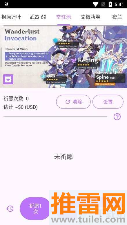 1、打开软件之后你就能看到各种祈愿池的入口,新手池、常驻池、活动限定池一个不落,想玩哪个版本的卡池就选哪个,更新也跟得紧,基本不会落下新出的角色和武器。
