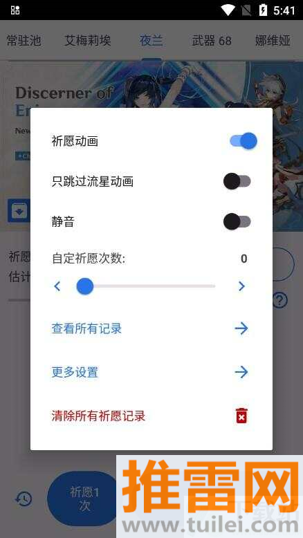 4、可以自己设置抽卡次数,不限于十连,想一次抽五十发、一百发也行,适合想快速测试出保底机制或者单纯想一口气看爽的人,数据也都能保存下来。