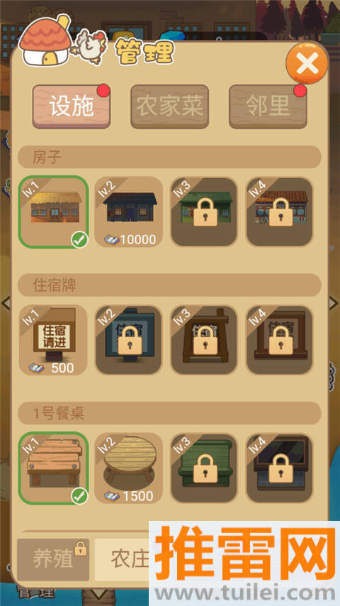 1、前期别乱花钱,先把基础农田和鸡舍建起来,鸡蛋和青菜卖得快,回本快,别一上来就搞鱼塘。
