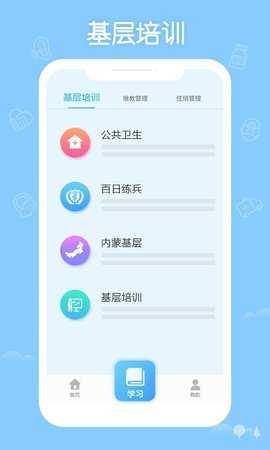 用户可以进行学科导航,显示所有专业课程,选择感兴趣的专业课程进行学习。扫一扫移动笔记本,方便学员随时随地进行学习笔记。学员在学习过程中,可以智能评估,高质量历年真题,专业研发新增考点题。用户点击住培管理,可以看到医院方面的最新信息;错题自动备案,随时随地收藏做笔记,方便学习。如果想学习医学方面的知识,可以点击学习版块,里面有详细的教学内容;点击我的,可以缓存视频下载观看。