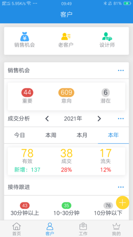 鹏邦门店APP还提供了客户管理模块,专门用于管理老客户和设计师。商家可以随时随地查询和检索老客户的信息,方便快捷地为客户提供服务。商家还可以通过服务热线和客服QQ来与客户进行沟通和解决问题。除了以上功能,鹏邦门店APP还提供了基础信息模块,包括产品、库存、任务、企业问答等,商家可以方便地查询企业的相关信息,并随时随地高效工作。鹏邦门店APP还提供了独立的配送师傅界面,商家可以通过该界面进行配送服务,并做好售后服务。