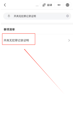 2、如果功能栏没有可以在上方搜索栏搜索“开具无犯罪证明”进入办理界面