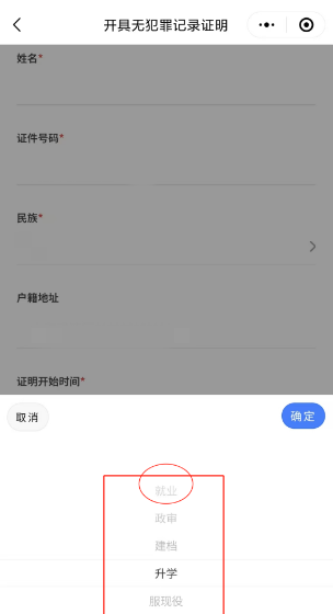 3、进入办理界面后,仔细阅读办理须知,随后点击“开始办理”。查看并核对自己的个人信息,在“用途”栏选择自己开具证明的实际用途,如就业使用,选择“就业”即可