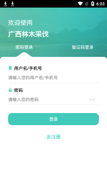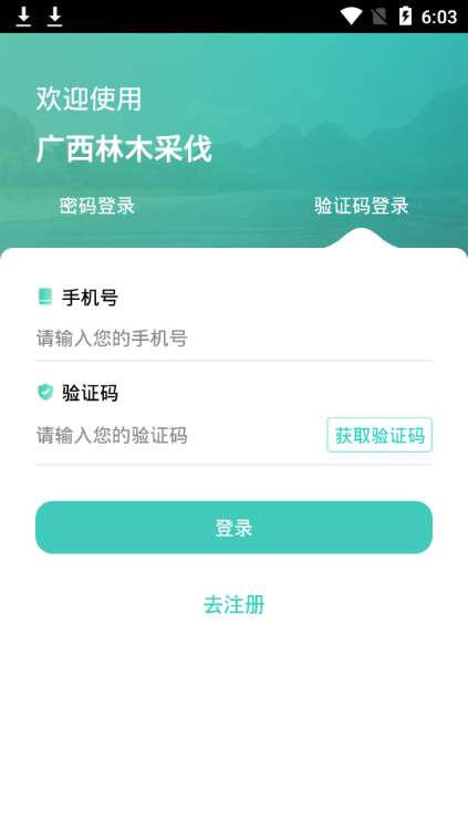 广西林木采伐支持多种登录方式,选择密码或验证码登录,保障了使用的便捷与安全。