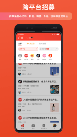螃蟹通告拥有超过20万活跃博主和1万多优质商家,涵盖的品类非常广泛,用户活跃度也非常高,为了吸引更多的博主加入合作,平台还提供丰厚的奖励机制,平台已经支持小红书、B站、抖音、快手、微博等多个平台,所以博主们可以报名加入合作了。螃蟹通告是一款非常优秀的博主、商家匹配平台,它能够帮助商家快速找到合适的博主进行推广,同时也能够帮助博主变现自己的流量。平台拥有丰富的博主资源和优质商家资源,通过自研的推荐算法和撮合匹配机制,可以实现快速高效的合作。博主们可以在平台上建立个人主页名片,展示自己的粉丝和互动数据,吸引更多的商家合作。螃蟹通告支持多个平台,博主们可以选择自己熟悉和擅长的平台进行合作。无论是博主还是商家,加入螃蟹通告都能够获得丰厚的奖励和更多的商机。
