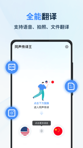 在文档翻译方面,同声传译王提供了强大的图片编辑工具,支持各种尺寸和底色的证件照拍摄功能。用户只需在家中就能拍摄出媲美影楼的证件照,无需外出办理。它还支持各类文件的扫描处理、文字识别、图片转文字等功能,为用户提供了便捷的文档处理工具。语音翻译是同声传译王的一大特色功能。