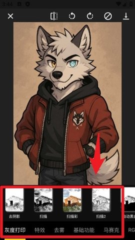 2.应用艺术滤镜与特效:在编辑视图下,浏览并选择如彩色扫描或去阴影等滤镜类别,点击即可实时查看效果,并可通过滑块微调强度。