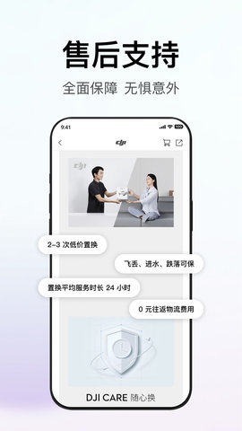 在商城中,还设有大疆学堂,为零基础的用户提供拍摄教学。这个学堂能够帮助用户从零开始学习拍摄技巧,提高自己的摄影水平。购物还可以返还DJI币,这些币可以用于支付商城内的任意订单,使购物更加便捷。设备服务是商城为用户提供的一项便捷服务。通过这项服务,用户可以更方便地管理自己的设备,解决设备使用中的问题。与商城进行沟通和交流。