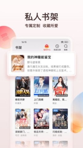 1.书架管理:用户可以在软件上建立个人书架,方便管理已阅读和想要阅读的小说,随时查看阅读进度。