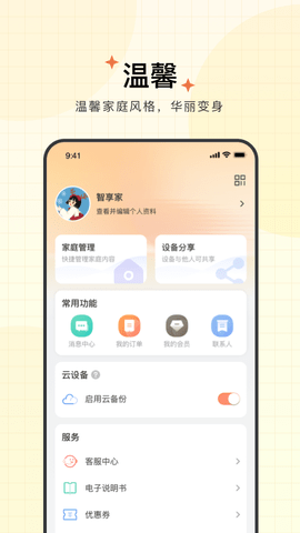 智享家的功能非常丰富,不仅可以帮助您管理智能设备,还可以让您享受到智能设备带来的便利和乐趣。通过智享家,您可以轻松地将设备配置上网,省去了繁琐的操作步骤。智享家还提供了丰富的设备相关服务内容,让您的智能设备使用更加便捷。智享家还支持设备分享功能,您可以将设备分享给家人、朋友,一起体验智能生活的乐趣。您不仅可以与家人朋友分享智能设备的便利,还可以一起享受智能设备带来的乐趣。