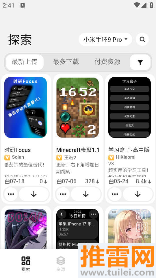 这里面内置了强大的搜索功能,不管是好看的表盘还是实用的小程序资源都能快速找到并下载。