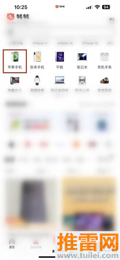 一、打开转转APP首页,点击数码分类下的"笔记本"专区进入。