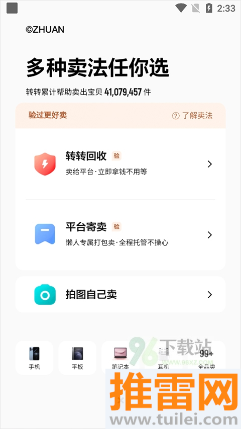 转转APP让你的闲置焕发新生,便捷的交易平台,让旧爱变新宠,轻松买卖闲置物品,安全可靠的担保交易和微信支付,保障你的交易安全,30秒快速发布,3天极速出手,让你的闲置物品快速找到新主人,从宝宝的玩具到旧手机,从闲置跑步机到心仪自行车,转转APP连接着热爱生活、精打细算的你我他,在这里,每一次转手都是一次新的开始,每一次交易都是快乐的传递,加入转转,让闲置转起来,让生活更精彩。