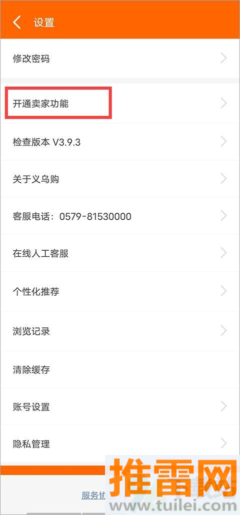 2、在设置页面里,找到并点击“开通卖家功能”。