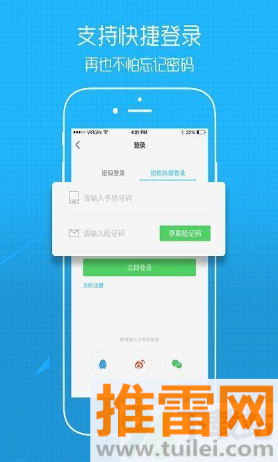 2、采用最新的人脸识别技术,三秒钟就能完成注册登录,再也不用担心忘记密码的尴尬。