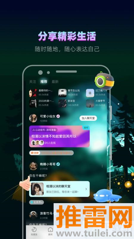 二十多种主题语音房间24小时开放,无论是想聊星座运势还是讨论最新电影,总能找到志趣相投的伙伴。