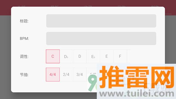 3、瞧见那个醒目的加号按钮了没?轻触就可以输入想要编写的乐曲名称等信息。点确定就会跳到正式的创作界面了。