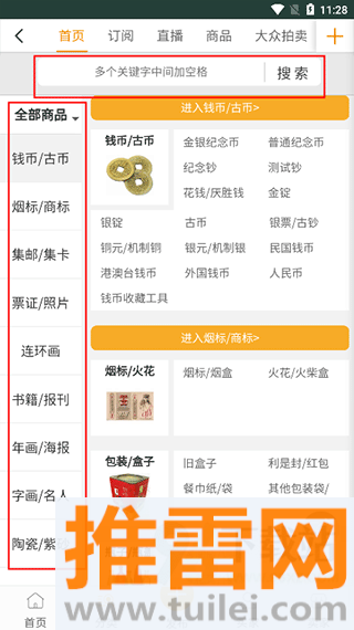 2、分类界面可以根据搜索来查找心仪物品,也可根据分类查看
