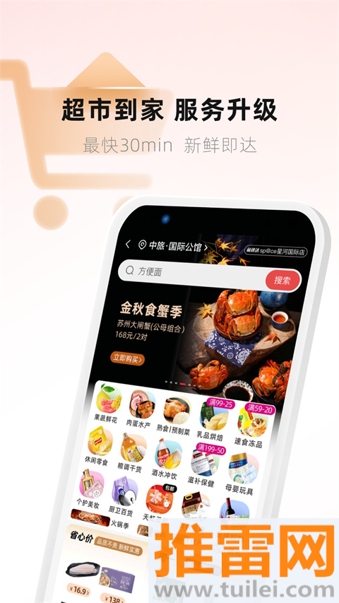 选好要买的日用品或食材,提交后最快两小时就能送到家门口,不用自己扛。