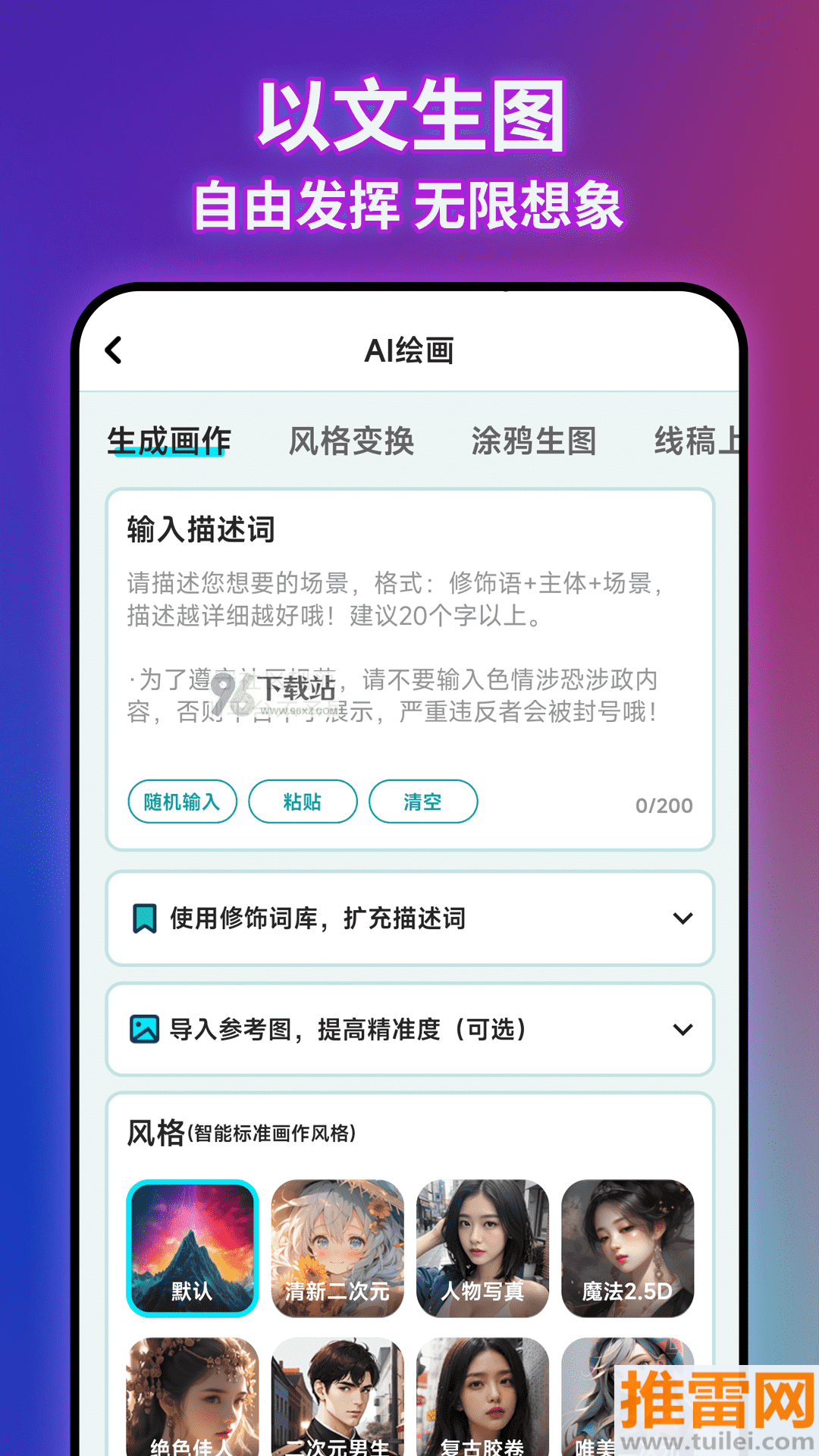 从二次元到赛博朋克,海量艺术风格任你挑选,让作品更具个性。