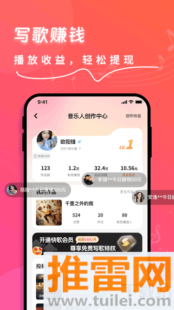 在这里可以展示作品获取反馈,还能接单为他人定制专属歌曲,让才华产生实际价值。