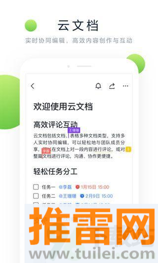 3、在文档协同编辑时可以使用@功能提醒特定成员查看或修改内容,提高协作效率。