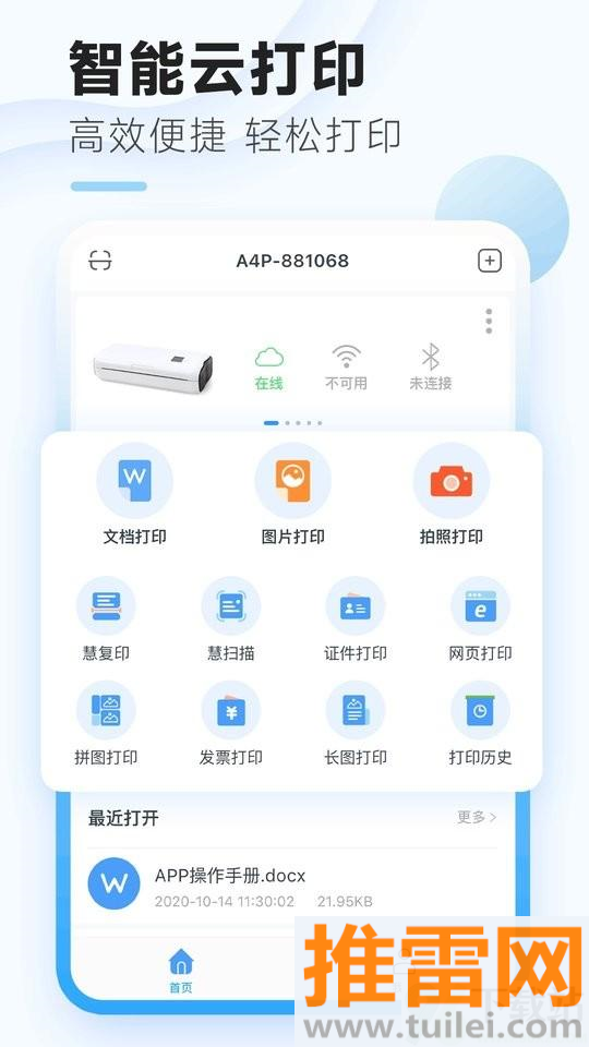 摆脱数据线的束缚,通过手机就能将云端文件直接发送到打印机,即使不在家也能远程完成打印任务。