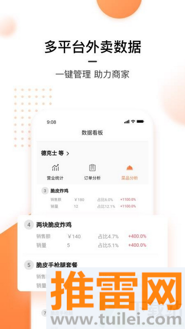 4、通过商品管理功能查看各平台销量排行,及时调整菜单结构。