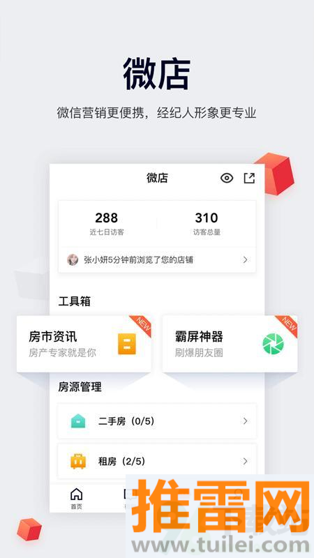 1、独创的电子名片功能,分享房源时自动附带经纪人联系方式,客户一键就能拨通电话。