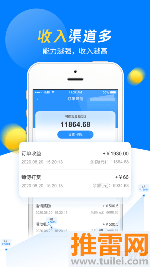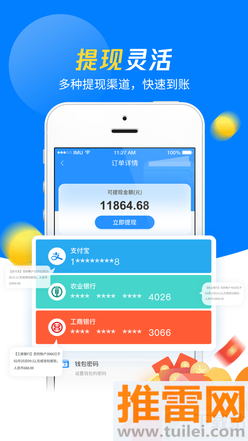 5、您的所有收入都会清晰地记录在钱包中,可以随时查看明细并发起提现到银行卡。