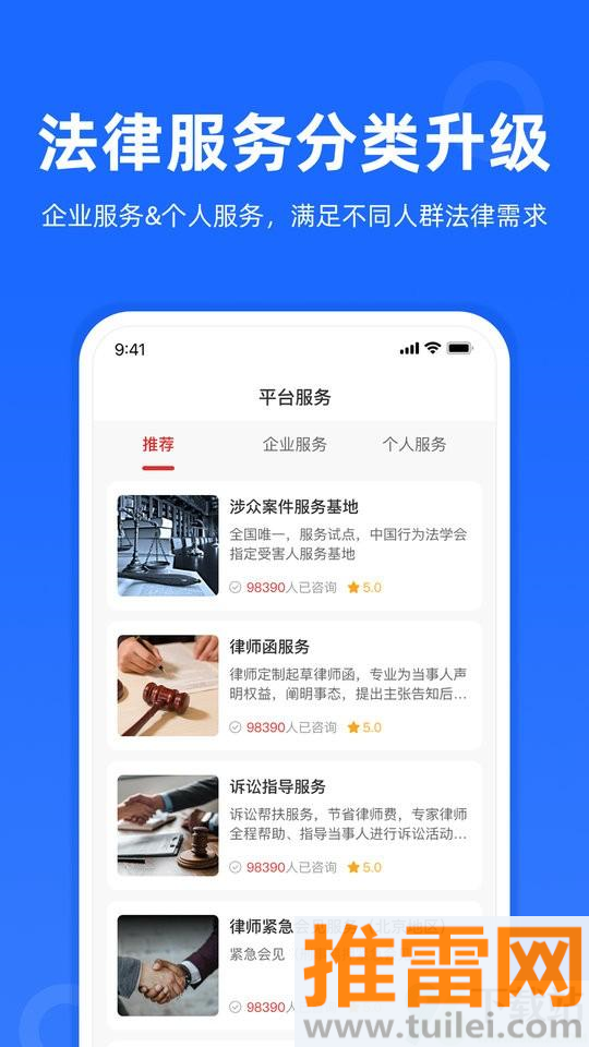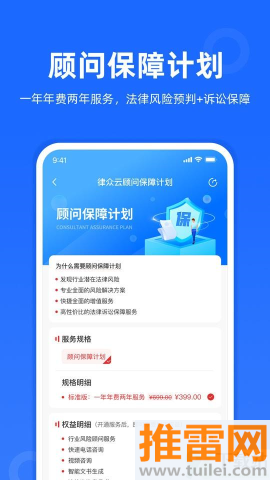 3、针对企业用户开发专属法律顾问服务,涵盖合同审核、知识产权保护等高频需求,帮助企业建立完善的法务风控体系。