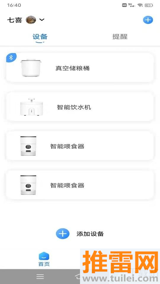 所有联网设备状态实时可见,喂食器剩余粮量、饮水机水位线等关键信息一目了然,遇到异常情况会立即推送提醒。