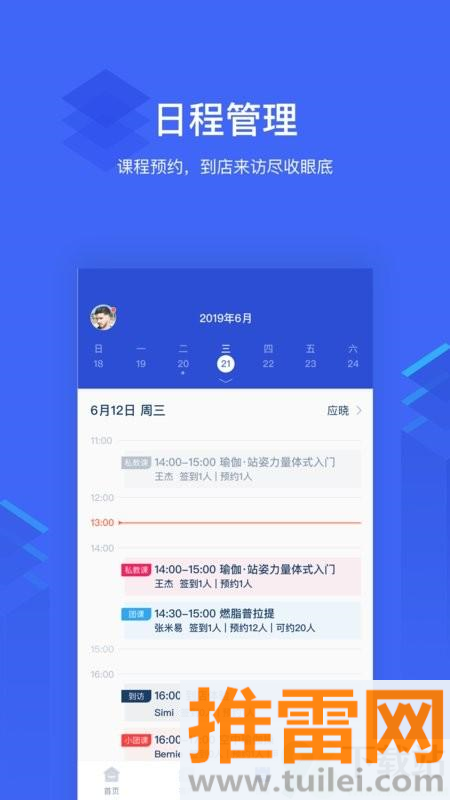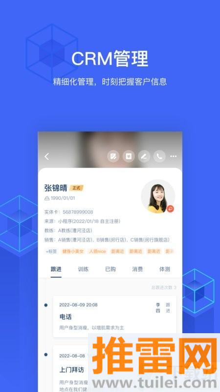 2、教练通过手机就能查看课程表和会员档案,提升服务响应速度。