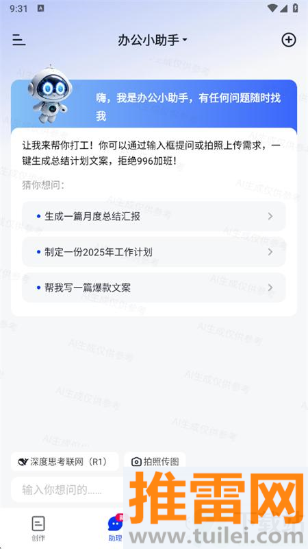 5、在助理界面随便提问题,像是“帮我写一封辞职信”或者“给我十个短视频标题”,回得快,内容也实用。