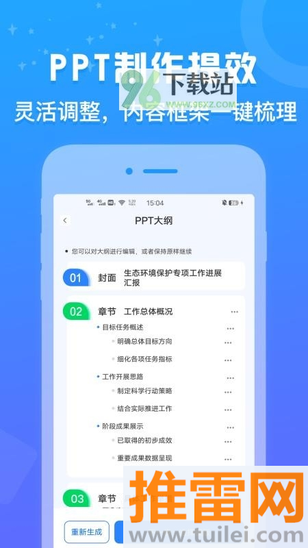 当你思路有点乱时,输入零散要点它能帮你理出逻辑主线,自动划分章节顺序,生成条理清晰的汇报框架,让你讲起来不卡壳,听的人也更容易跟上节奏。