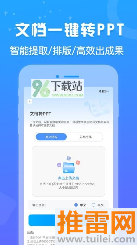 3、如果已有现成文档,点击“文档转PPT”功能,从手机本地上传Word或PDF文件,软件会在几十秒内解析内容并转化为美观清晰的幻灯片结构。