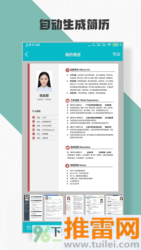 答:软件本身不会上传或存储你的资料,所有内容都保存在本地,只要不主动分享出去,别人就看不到你的简历内容,使用起来比较放心。