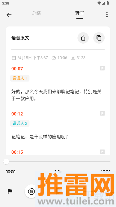 2、转写成文 录音结束点一下,系统就把你说的话变成文字,标点段落都给分好了,看起来不像聊天记录那么乱。