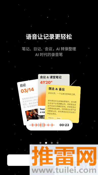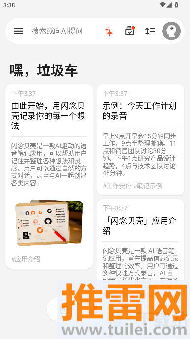1、语音速记 随手张嘴说话就能存成一条笔记,录完不耽误事儿,适合走路、坐车或者临时有想法的时候用。
