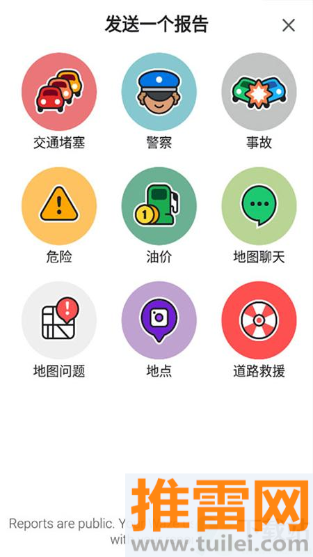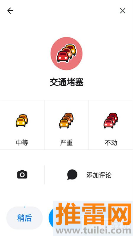 4、在路上看到堵车、事故或者警察查车,点一下屏幕就能快速上报情况,还能加几句文字说明提醒别人。