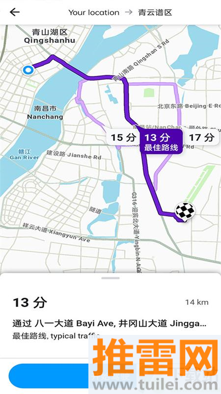 3、确认路线后点击开始导航,软件就会用语音一步步引导你,途中遇到变化也会自动帮你重新规划。