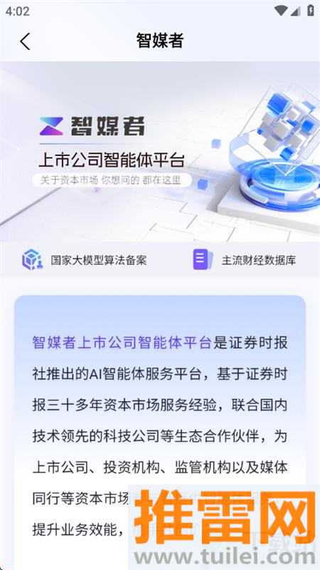 智媒者app是深圳证券时报社推出的一款专为资本市场人士打造的实用工具,说白了就是给上市公司、投资者还有金融从业者用的一个信息整合平台,它不搞虚的,主打一个靠谱和省事,把平时查政策、看舆情、盯同行、分析市值这些琐碎又重要的事儿都拢在一块儿,不用再东翻西找,背后有证券时报三十多年的行业积累撑着,数据来得快、看得准,谁想及时掌握市场风吹草动,用这个算是找对地方了。