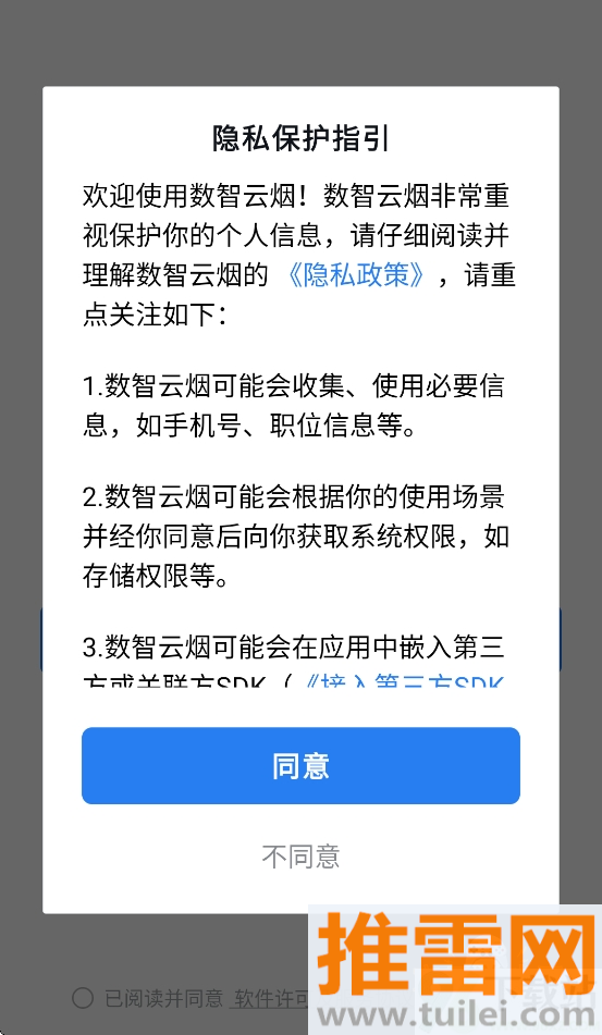 2、打开软件后会弹出协议页面,直接点同意就行,系统不会自动登录,得自己手动进登录界面。