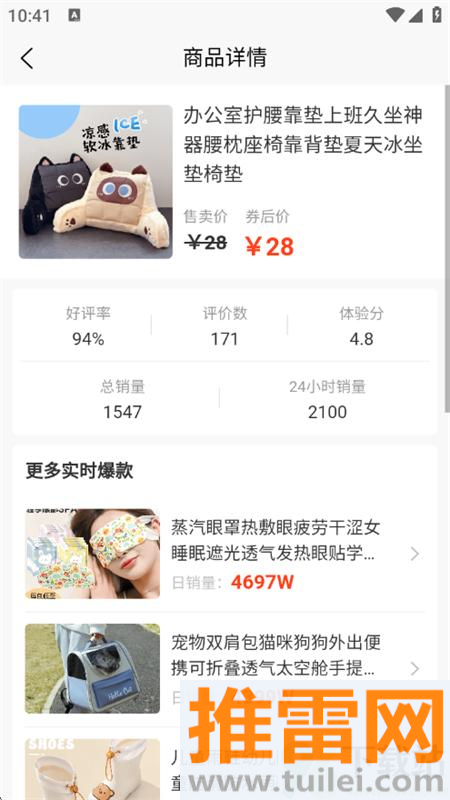 4、切换到选品页面可以查看不同分类下的热门商品,点进去还能看具体的好评率和历史销量曲线。