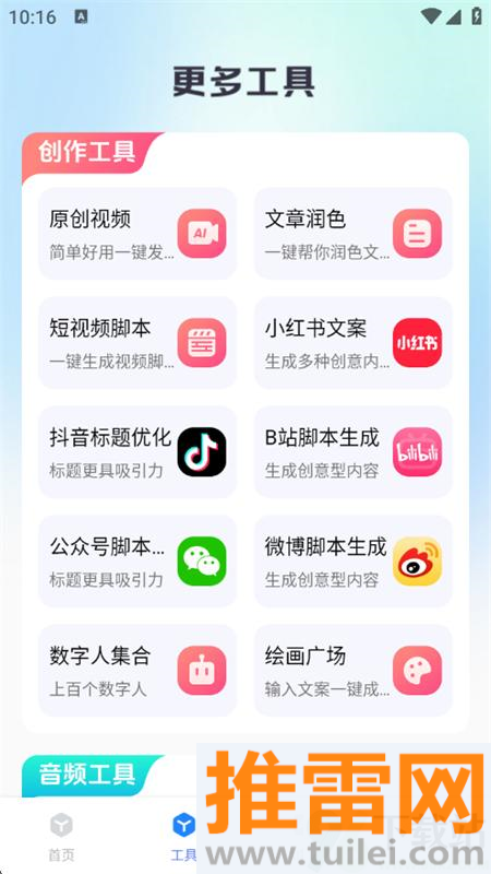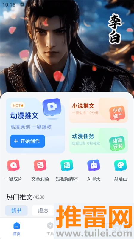 趣推文App走的是实打实的“内容变现”路线,不玩虚的,就是帮你把脑海里的故事、追过的小说、看过的动漫,快速转化成吸引眼球的短视频,不管你是想试试出镜、积累点粉丝,还是顺手接个任务赚点零花,它都能提供一整套支持,平台功能很全,从生成文案、自动剪辑视频,到加字幕、配音乐、打特效,整个流程一站搞定,不用再切换好几个软件拼拼凑凑,操作也简单明了,几步选择就能生成一条节奏紧凑、画面带感的短视频,新手也能快速上手,特别适合那些有内容想表达,但又不想花大把时间学剪辑的人,现在刷动态、看短片是主流,光靠文字已经很难出圈,趣推文正好解决了“怎么把故事讲得好看”的问题,让你轻轻松松把一段情节变成有声有色的视觉内容,发到社交平台更容易被人看见、点赞、转发,不复杂,不折腾,就是帮你把想法变成能传播的作品。