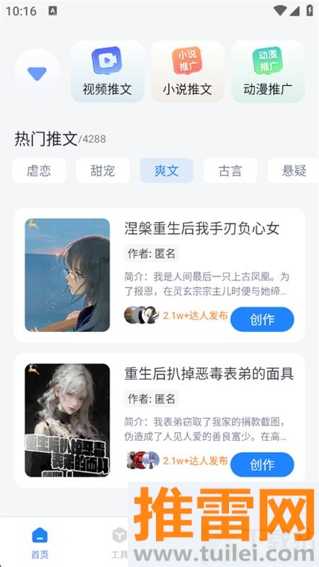 支持小说、动漫、视频等多种推文形式,想发哪种就选哪种,内容适配不卡壳。