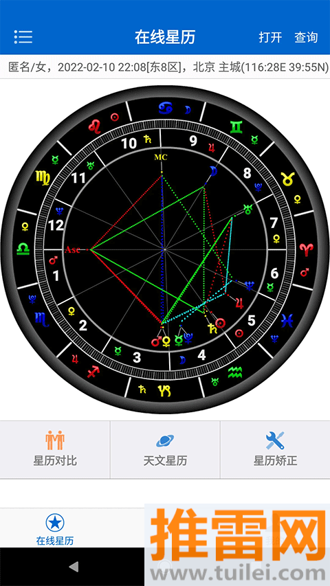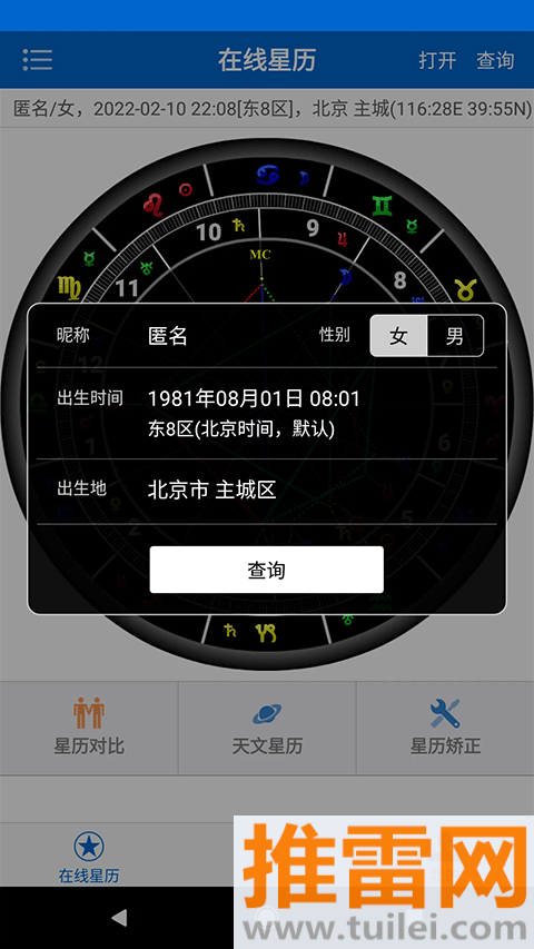 1、首次使用需在“在线星盘”页面准确填写出生年月日、时间和地点,建议精确到分钟。