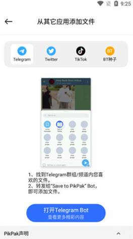 5、想把其他应用里的文件存到这里?没问题,PikPak支持直接从别的app里导文件。