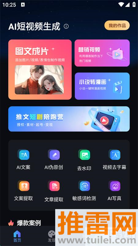 2、首页功能分区很清晰,新手可以直接点“图文成片”开始操作,不用到处翻找,上手基本没难度。