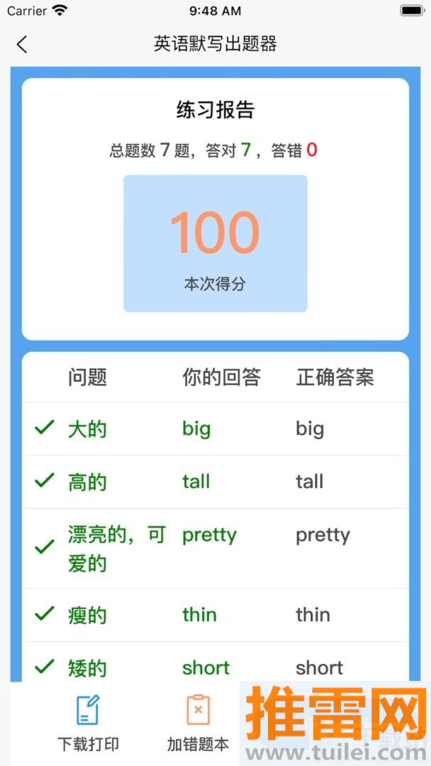 自动记录拼写错误的单词,生成专属错题本方便反复强化,避免重复犯错。